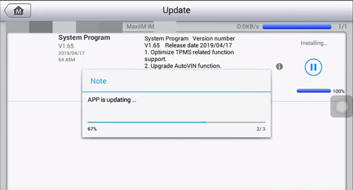 Step 3: Run Update In MaxiIM menu, select Update function Check available software update and download software It will auto install and update MaxiIM APP Launch MaxiIM home menu Open MaxiIM App MaxiIM is initializing data Go to Update function again Check available IMMO or Diagnosis update and run update Done.
